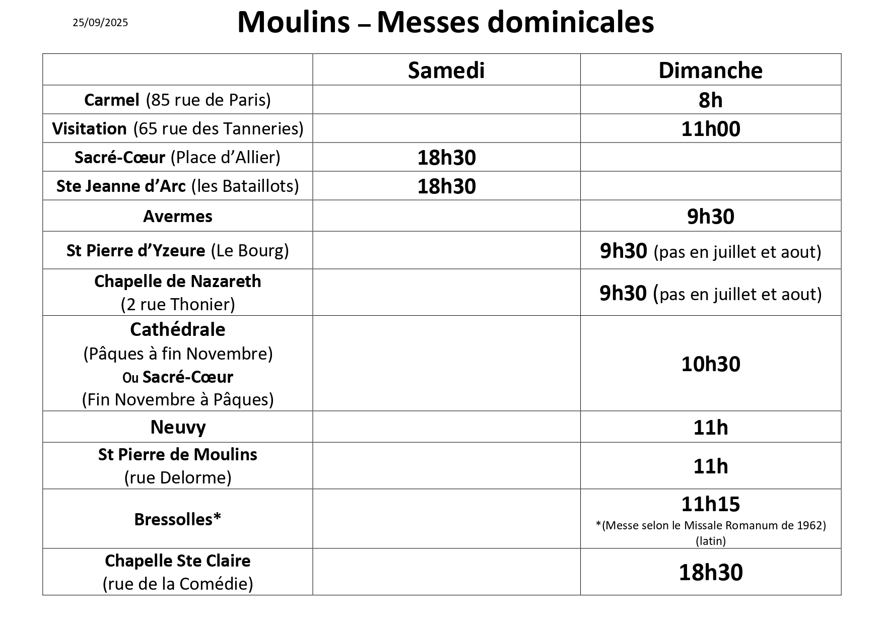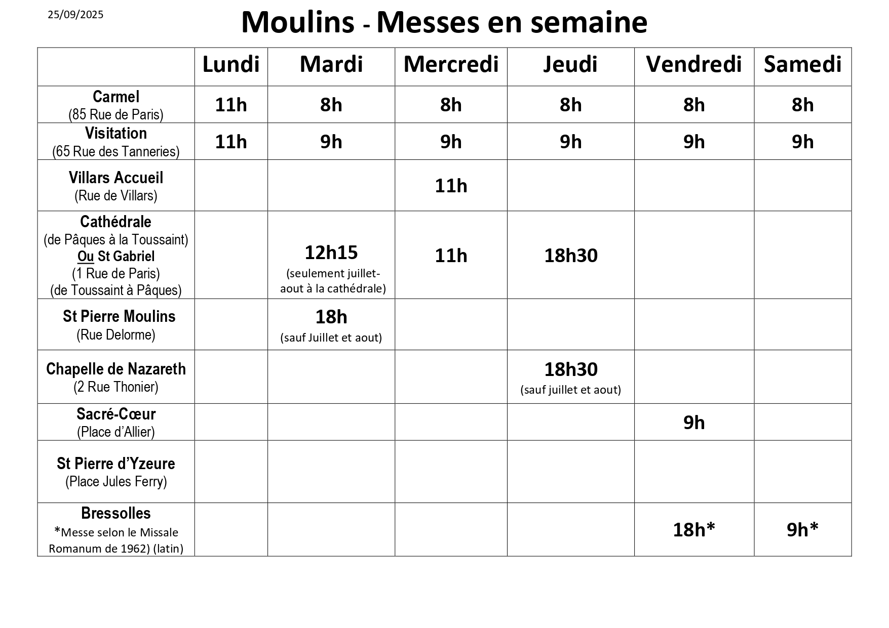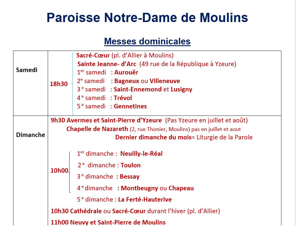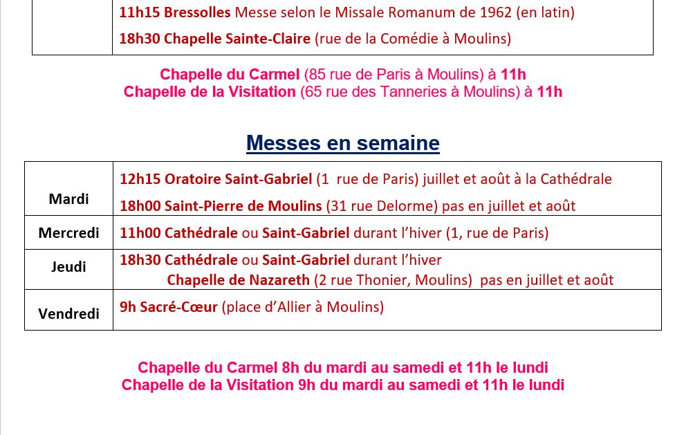 Les horaires de confession